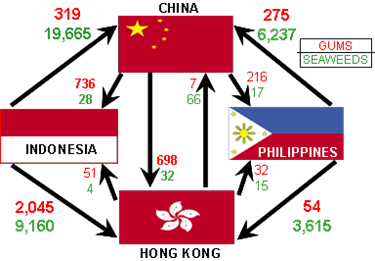For BIMP-EAGA by far the largest flow of RAGS seaweeds from 2000-2006 was to China and Hong Kong.